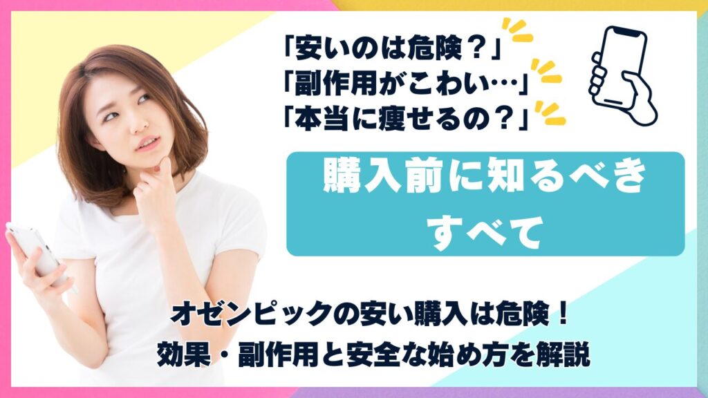 「オゼンピックの安い購入窓は危険」です。正しい効果や副作用を知らずに始めると「痩せない」どころか健康を損なう恐れも。この記事で、失敗しないための正しい知識と、忙しいあなたに最適な安全な始め方を解説します。 マンジャロ【経験者が解説】マンジャロが安いオンライン窓☐5選!料金で失敗しない賢い選び方